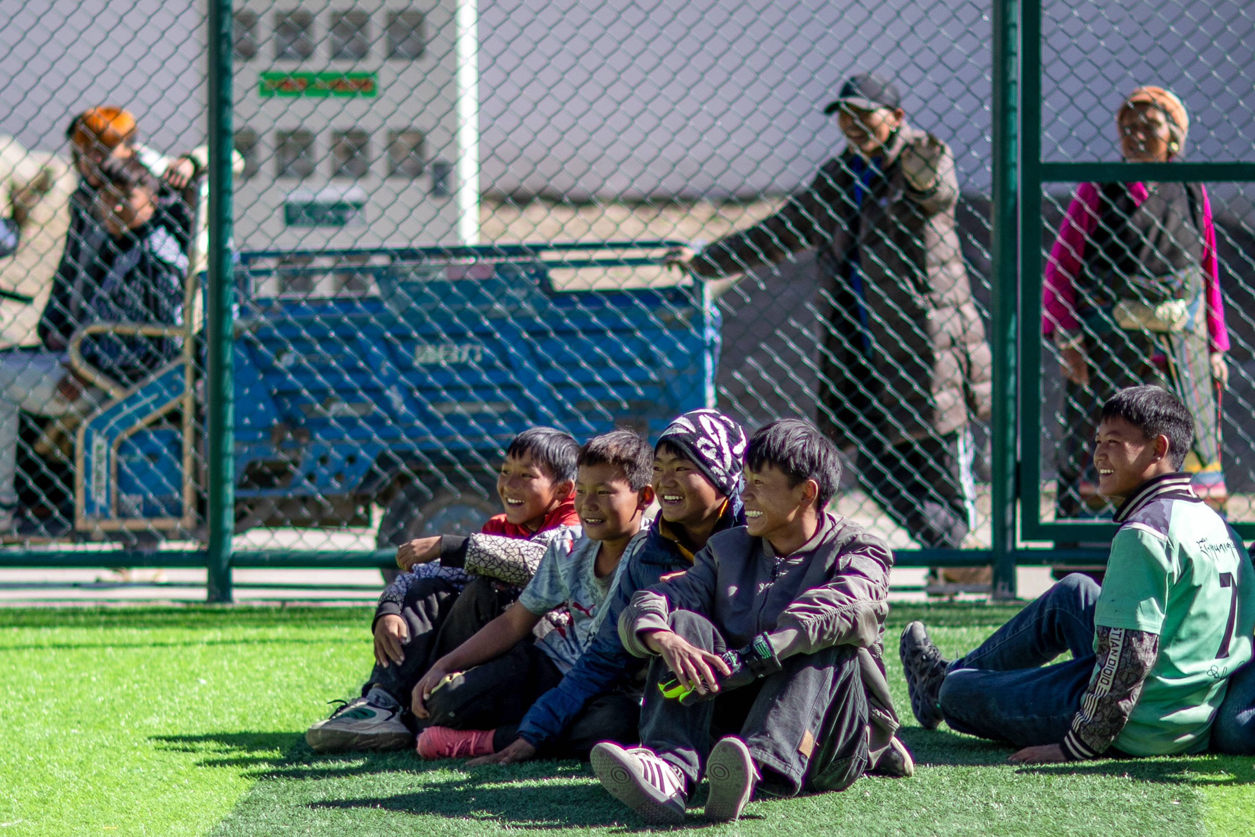 1月5日,在森嘎村的足球场上,少年在观看伙伴们踢球。新华社记者 姜帆 摄记者:索朗德吉、普布次仁